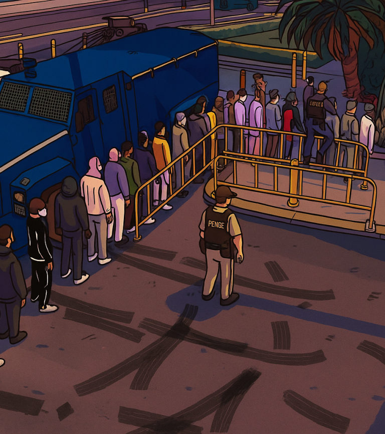 Stelle dich in die Schlange vor den Toren des SAHP Hauptquartiers und beachte die Anweisungen des Personals für einen reibungslosen Ablauf.