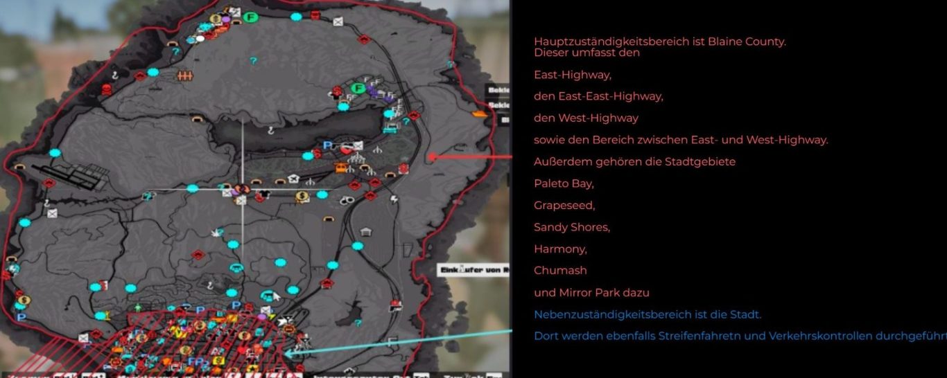 Die San Andreas Highway Patrol ist eine professionelle und hoch angesehene Polizeieinheit, die sich dem Schutz der Bürger von San Andreas verschrieben hat. Unser Konzept basiert auf einer engen Zusammenarbeit mit weiteren Polizeibehörden und einem proaktiven Ansatz, um Verbrechen zu verhindern und die öffentliche Sicherheit zu gewährleisten.